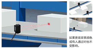 特殊光學透鏡設計,受工件顏色影響較??;即便在異色工件流通的產線上也可穩定檢測。